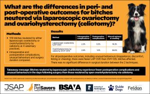 The findings add to a growing body of evidence suggesting that postoperative complications, including those related to wound healing and those requiring further veterinary intervention, are lower for laparoscopic than open surgeries for bitches neutered by experienced veterinarians.